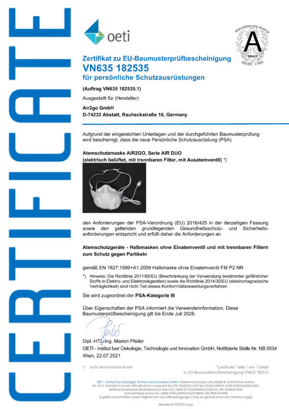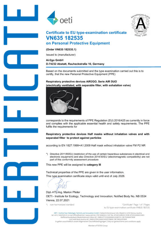 EU Konformitätserklärung AIR DUO + Zertifikat